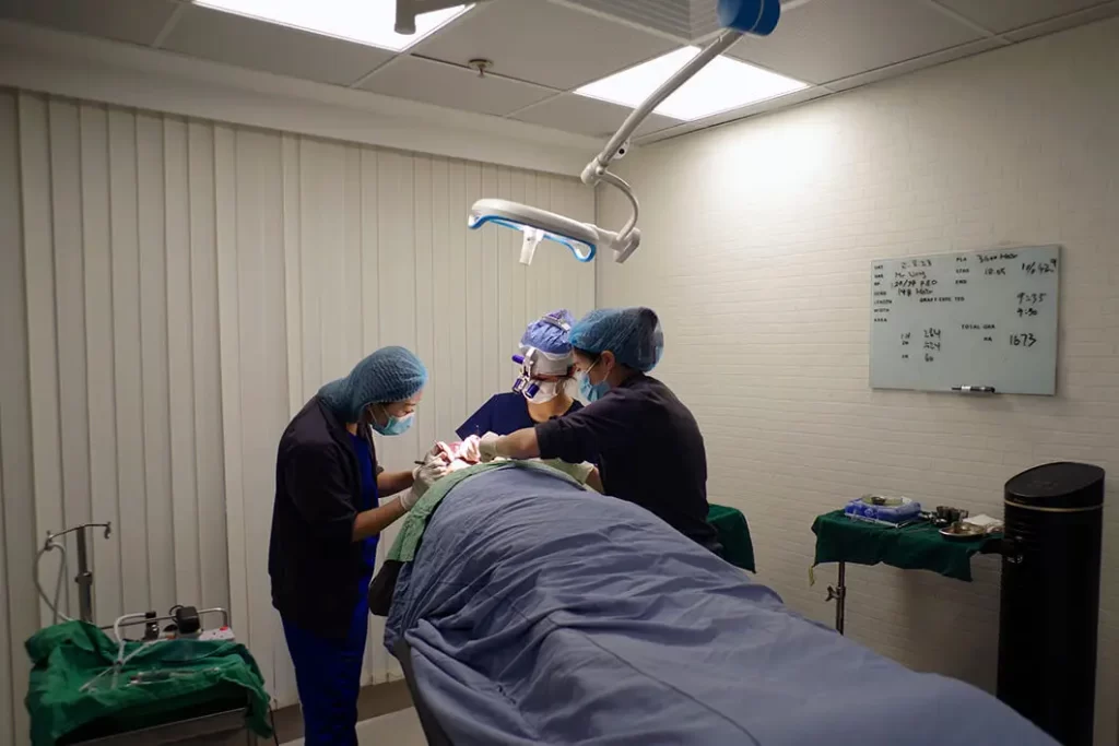 様々な体位や植毛プロセスに対応するため、当センターには異なる手術用チェアが用意されており、その中にはアメリカから輸入された毛根植入専用のチェアがあります。このチェアは、背部と首部をしっかりサポートし、独自設計の首枕によって移植エリアの傷口を圧迫せずに、数時間快適に静かに横たわることができます。また、1人の医師と2人のアシスタントを収容できる十分なスペースがあり、手順を効果的に調整することができます。