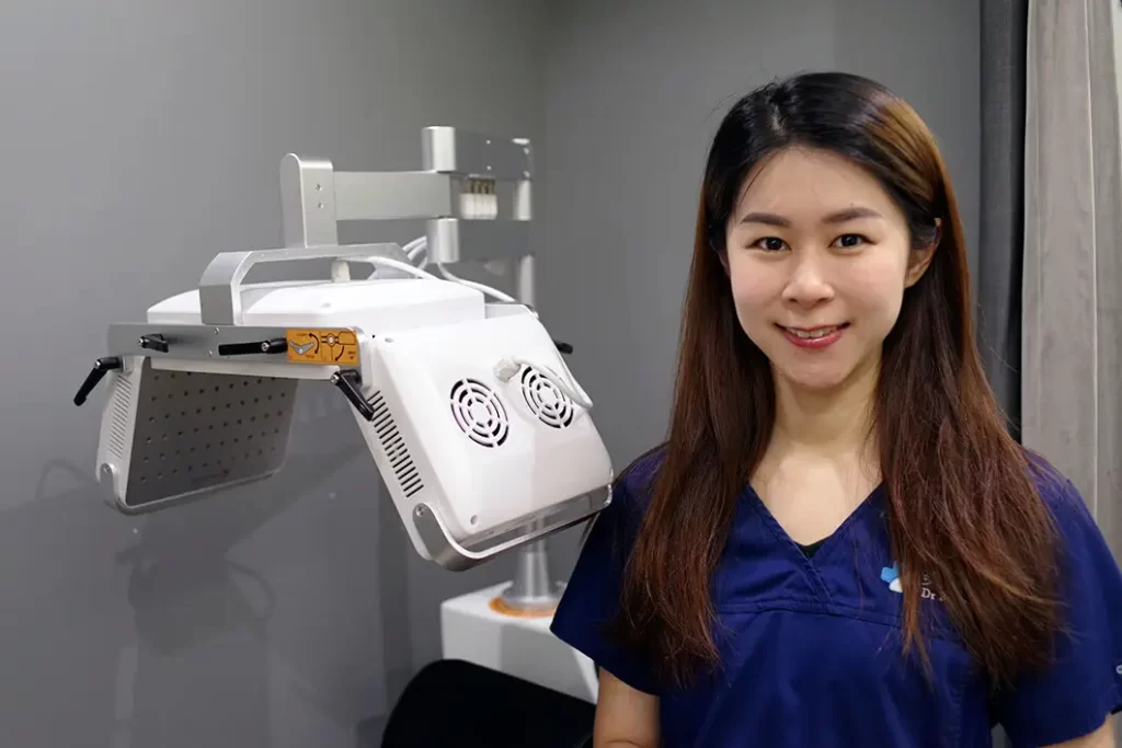 クリニックにはレーザー治療室が設けられており、植毛料金には2回のレーザー治療後の髪の活性化療法が含まれています。植毛後に低エネルギーレーザーを使用することで、照射箇所の血液供給が増加し、一時的な脱毛(ショックロス)を減少させます。細胞の呼吸を増加させ、活性酸素を誘導して細胞核の転写因子を活性化し、移植された毛包の休止期を短縮し、髪の成長を促進します。